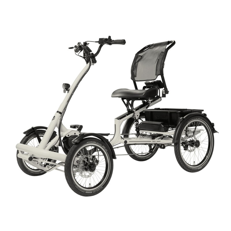 Met onze Tibo+ haalt u een bijzonder krachtige en comfortabele vierwieler met stoeltje in huis. Aangedreven door een Bosch Performance Line CX motor en uitgerust met een stevige 545 Wh-accu en hydraulische schijfremmen brengt de Tibo+ u overal met de nodige kracht naar toe. Daarbij kunnen de hoogte en de hoek van het comfortabele en royale zadel gemakkelijk worden versteld zodat u ook voor langere uitstapjes uitstekend gewapend bent. Dankzij de intuïtieve bediening en het veilige gevoel van vier wielen hebt u hier altijd een betrouwbaar en sportief maatje aan uw zijde.